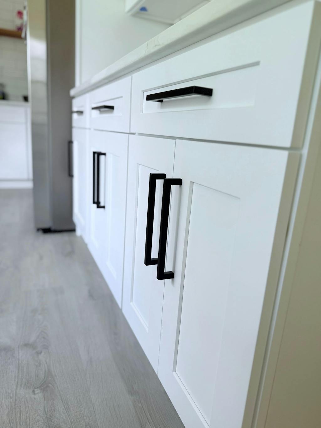 Modernize any kitchen or bathroom with these stylish black drawer pulls. These sleek cabinet handles will instantly add a contemporary touch to any space. Perfect for giving cabinets and drawers a unique, modern look.
