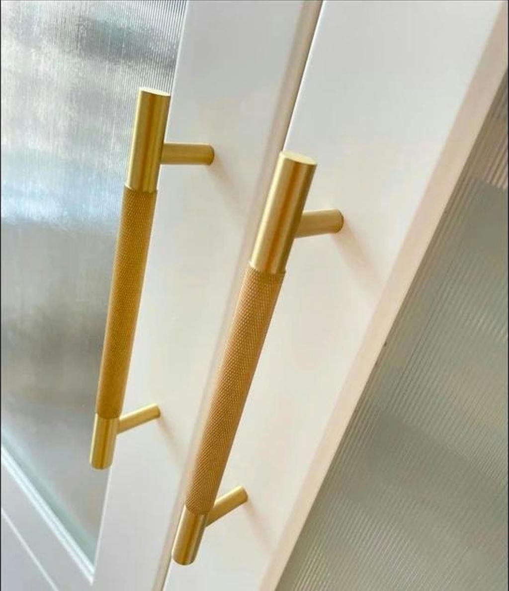 - The cabinet handle is made of aluminum alloy, light weight, with a threaded surface design, golden color, clean and tidy.
