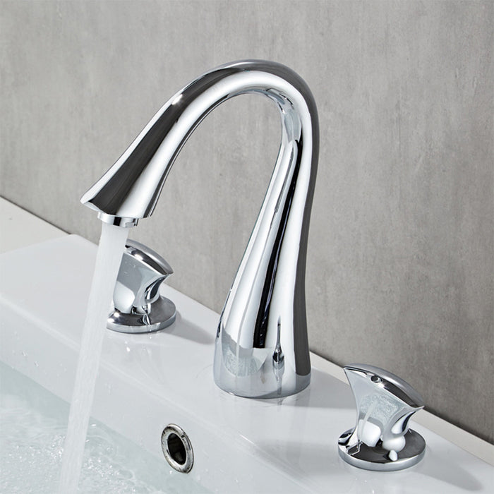 Simple 2 Handle 3 Hole Bathroom Sink With Faucet