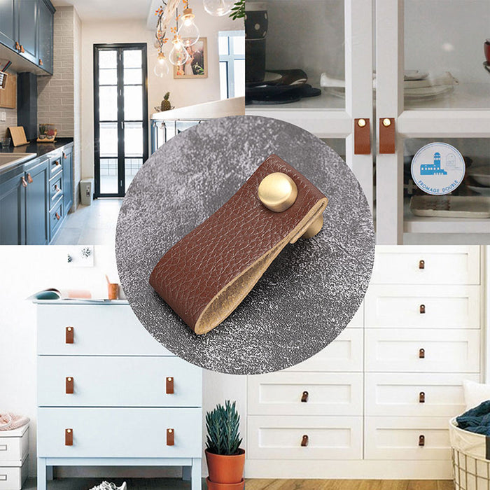 Colorful Brass Leather Cabinet Dresser Drawer Pulls