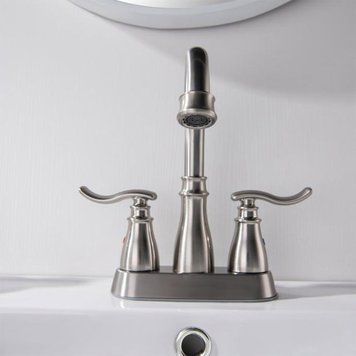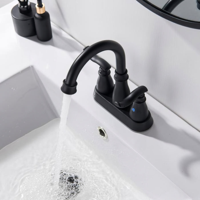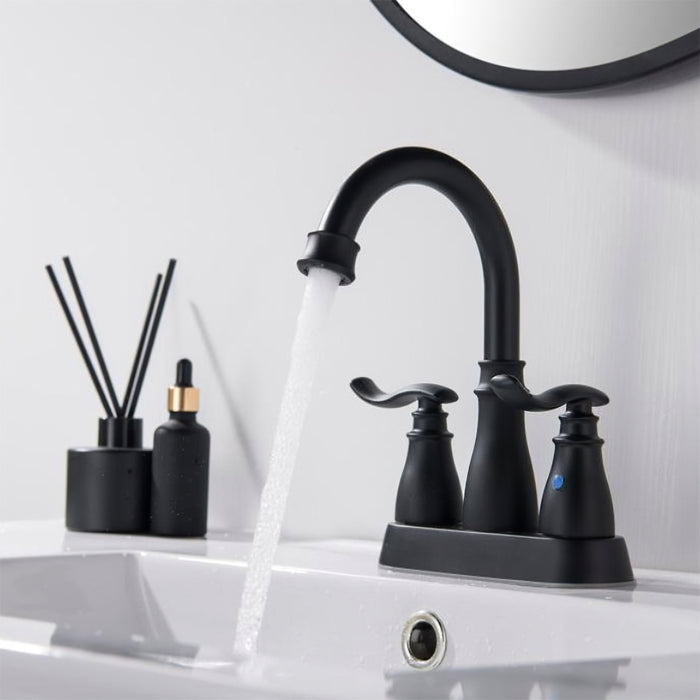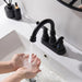 Featuring 2 holes and a handle, the faucet effectively manages the flow of hot and cold water, ensuring ease of use. Enjoy a sleek, modern bathroom design while experiencing the convenience of controlling the temperature with just one handle.