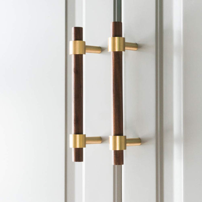 Walnut & Beech Wooden Liberty Hardware Cabinet Pulls With Brass Base